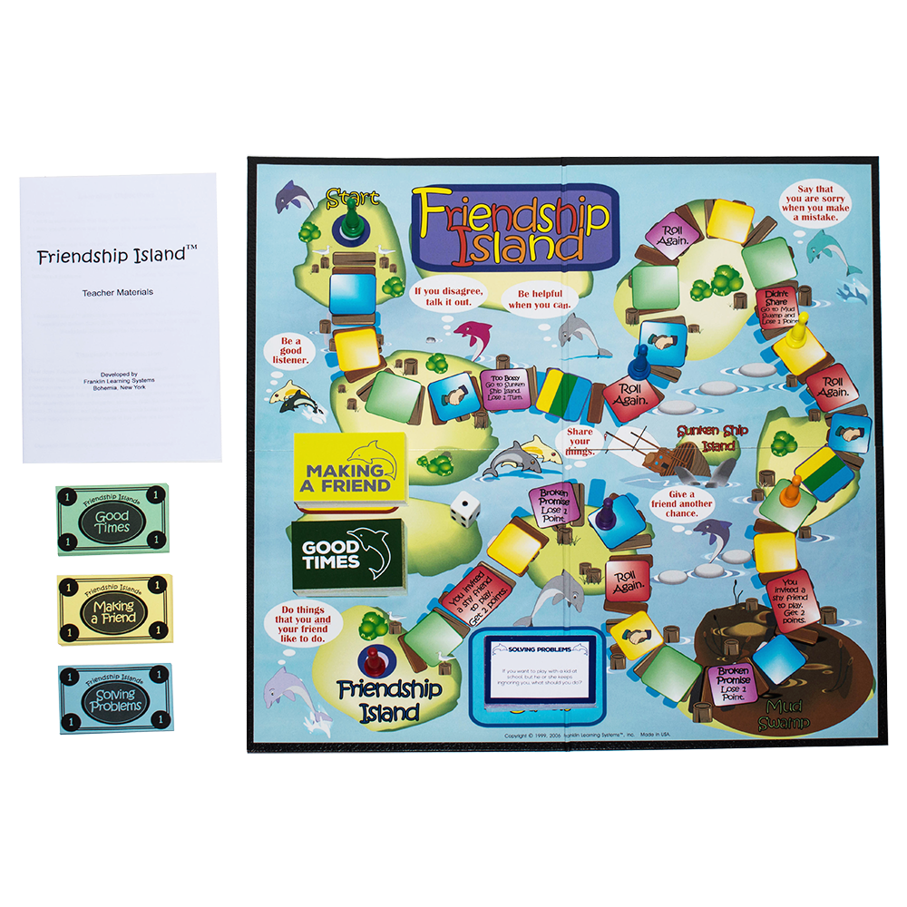 The play of the game has been designed so that the players cooperate and help each other as well as answer questions about friendship to win points for themselves. The game also helps shy and socially delayed students explore friendship issues that they would be hesitant to verbalize without the special supportive environment of the game.