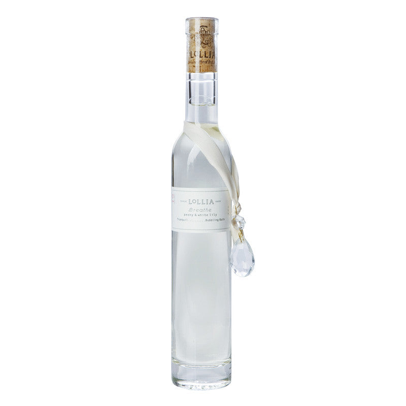 A luxuriously rich and beautifully perfumed bubble bath formulated for lots of full, fragrantly chattering bubbles. Delicate and decorative. Slender profile, satin sash and crystal-- what more could a girl ask for! Fill the tub to the rim with romantic bubbles. The gentle whisper of ruffled Peony & White Lily are blended into a luxurious formula of Olive Fruit and Avocado Oil to create a beautiful bath time retreat that is totally Lollia.