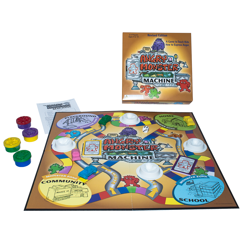 This game helps kids transform their anger. This ingenious game was designed to have a high play value for children who have problems with anger control. Each player uses a truck to pick up Play Doh (R) monsters and cart the monsters back to the transforming machines, where he must say something that makes him angry. Players then select adaptive ways to transform the anger into something positive, and must transform the Play Doh (R) monster too! This game is so much fun, it makes kids want to work on this difficult problem. For 2-4 players Ages 5-10.